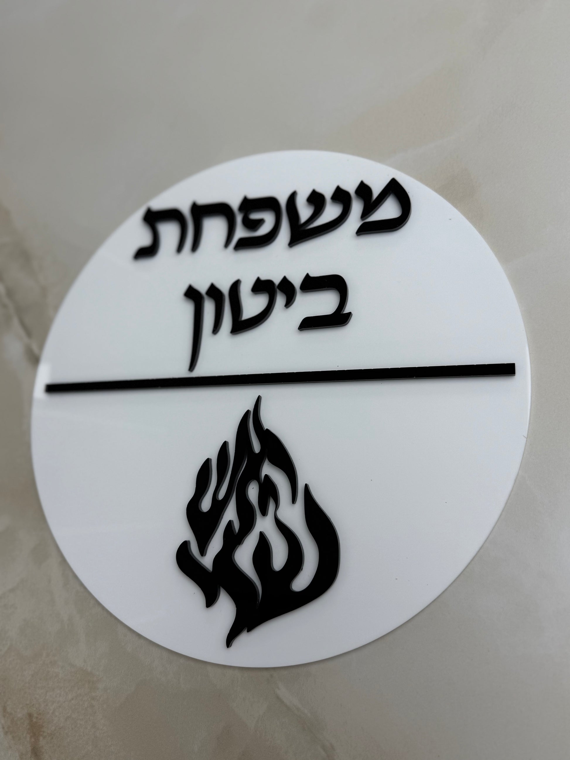 שלט לדלת דגם האש שלי עגול שחור לבן